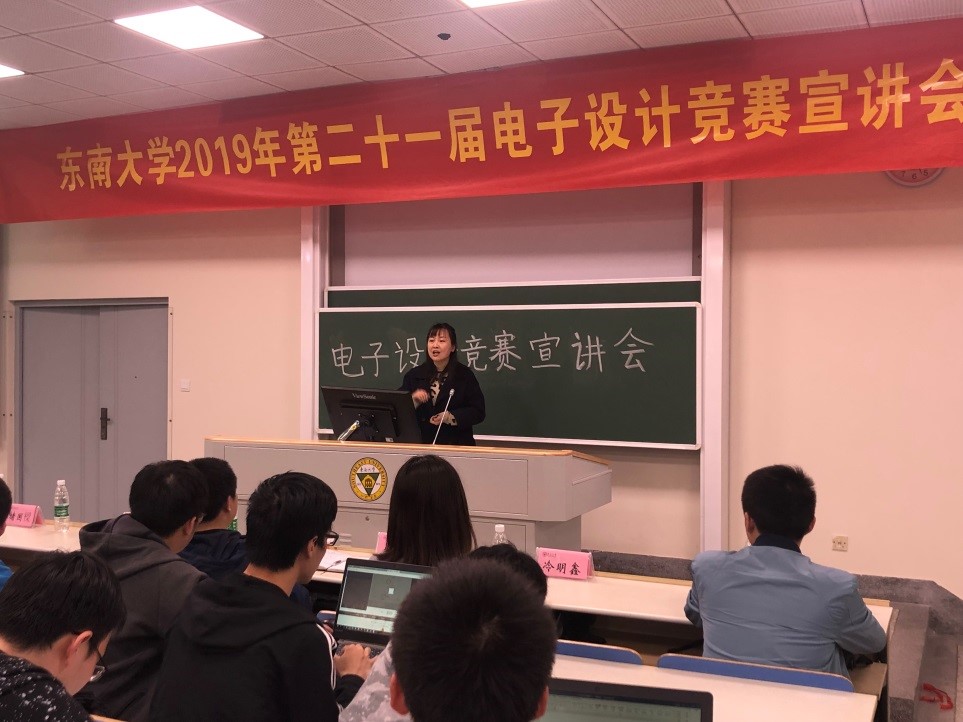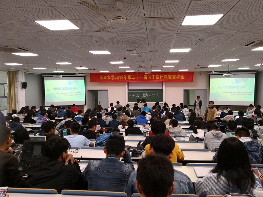 由主持人简要介绍了到场嘉宾和宣讲会流程之后,宣讲会正式开始。首先,电工电子中心堵国樑教授从历届电子设计竞赛的赛制和规则讲起,讲解了今年比赛的具体安排和流程,接着展示了近年来bv1946伟德官网在电子设计竞赛的省赛和国赛中取得的骄人成绩,鼓励同学们积极参加竞赛,锻炼自己的能力,同时为学校争光。最后,堵国樑教授讲到了今年的电子设计竞赛的培训时间和安排,让同学们对电子设计竞赛有了比较详细的了解。