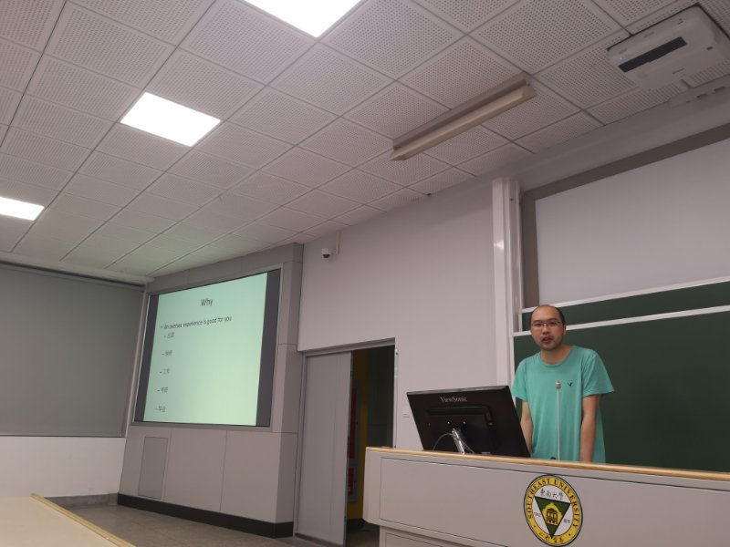 接着由仪科14级曾获得国家留学基金委项目支持的优秀员工李坤做经验分享,就项目申请过程中的注意事项做了着重介绍。同时,李坤同学结合自身的留学交流经历向同学们提出了一些关于如何准备本科国际的建议。