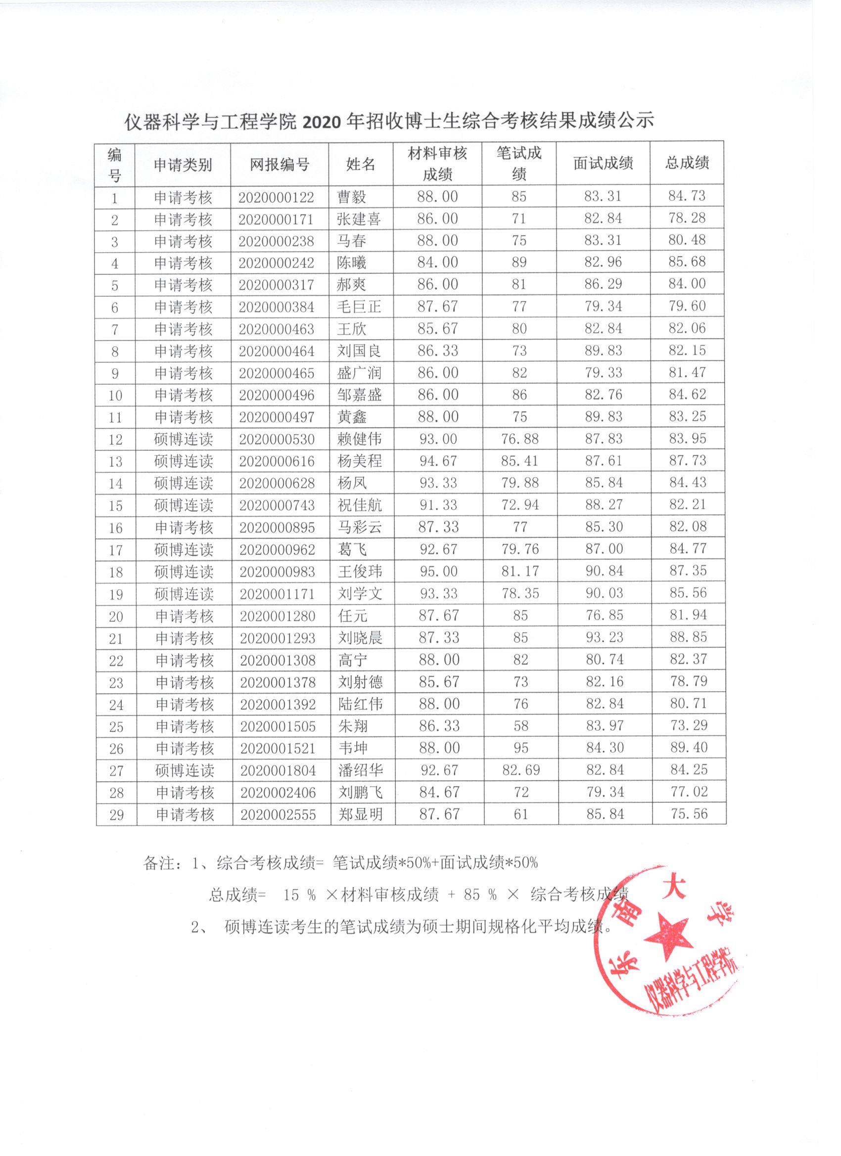 伟德源自英国始于19462020年招收博士生综合考核结果成绩公示
