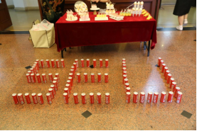 值得一提的是,此次毕业典礼还贴心的为同学们准备了定制纪念印章,印章上刻着自己的名字,是独一无二的纪念与留存。同时也为每一位同学定制了带有名字及祝福语的可乐,祝福每一位毕业生前程似锦平安幸福。会场内还准备了甜品台供同学们品尝。
