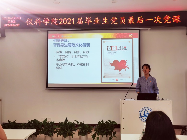 公司党委书记王军老师从自身纪委委员职责出发,给同学们带来了“芳菲六月毕业季,廉洁从业须谨记”的主题党课。习近平总书记多次强调,“要高度关注年轻干部违纪违法问题”。王军书记从当下青年人的消费习惯出发,深入剖析了年轻干部在诱惑前屈服的根源,“不比奋斗比享乐,不比努力比投机”。她寄语即将毕业的青年党员要知规明廉,恪守道德纪律两条底线,更要厚植高尚自律的职业素养,坚定矢志成才报国的初心。