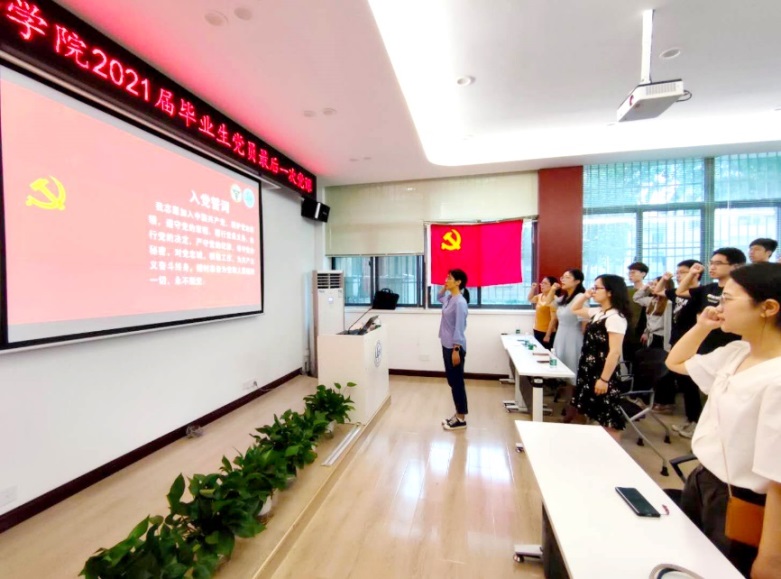 时值党的百年华诞,恰逢bv1946伟德官网毕业季,为筑牢毕业生党员的初心和使命,让青年学子在中华民族伟大复兴的征程中勇担大任,公司党委于6月17日开展了“青春筑梦․扬帆远航——2021届毕业生党员最后一次党课”主题活动。公司党委书记王军老师、党委副书记丁小丽老师、党委秘书王蓉老师、辅导员彭袁圆老师以及学院全体毕业班党员同学参与了本次活动。