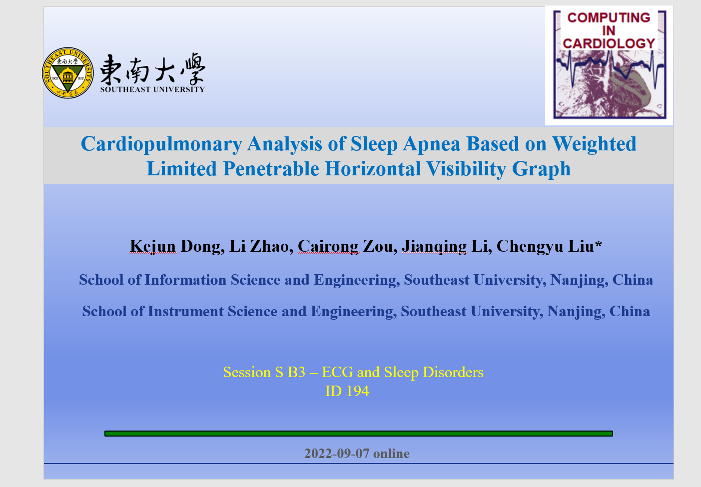 2022年9月4日至9月7日,第49届计算心脏学国际会议(International Conference on Computing in Cardiology, CINC 2022)在芬兰的坦佩雷举行。计算心脏学国际会议是自1974年以来每年举行的国际科学会议,为来自医学、物理学、工程学和计算机科学领域的科学家和专业人士提供了一个平台,以讨论目前在临床心脏病学和心血管生理学中与计算相关的研究。受疫情影响,今年采取线上线下混合形式。