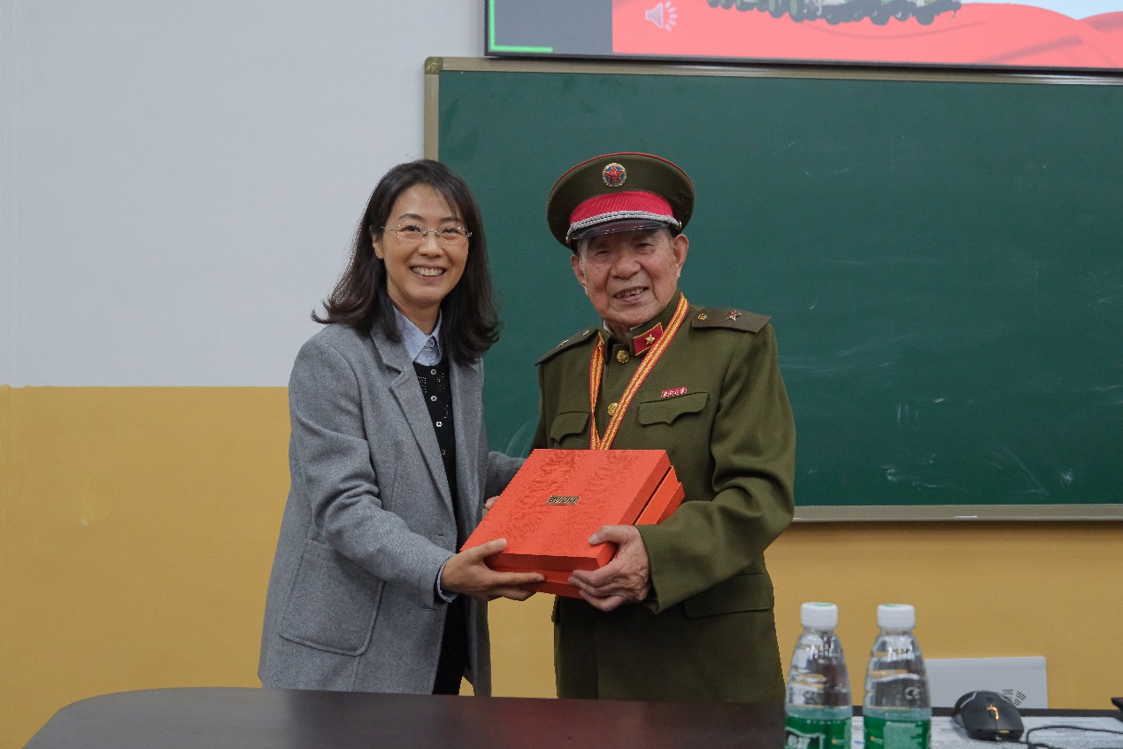 伟德源自英国始于1946闫宇楠同学代表所有同学们给董老师献花,感谢董老师对青年员工们无私关心与爱护。在多年的国防教育活动中,董老师也与很多老师结下了深厚情谊,公司党委书记王军老师代表教师,向董老师赠送礼物,感谢董老对bv1946伟德官网国防教育事业深深的情怀,对三尺讲台的无限热爱。