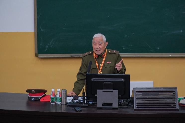 银发生辉,退而不休,神采奕奕,英姿飒爽。1987年10月23日,在致知堂报告厅,董老师首次开设了“南疆战火”主题讲座;2022年11月16日,董老师再次回到致知堂报告厅的讲台上给师生们带来国防主题讲座。从1987到2022,35年弹指一挥间,董老师从气宇轩昂的青年教师变成了精神矍铄的耄耋老者,但是他从未停下过脚步,执着地坚守着这三尺讲台,深深地热爱着这一份事业,给青年学子们带来共计2138场讲座。全体师生们共同观看了“退而不休,银发生辉”短片,回顾董老师耕耘在三尺讲台颂国防的点点滴滴。