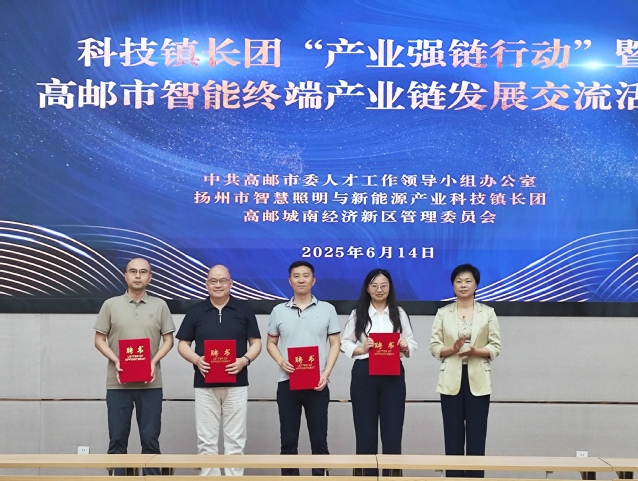 活动现场,bv1946伟德官网公司党委与高邮城南经济新区党工委共同成立“智能终端产业党建共同体”,以党建为引领推动产学研合作走深走实。同时,bv1946伟德官网首席教授孟晓林等4位专家被聘为“高邮市智能终端产业链发展顾问”,将为地方企业提供长期技术指导。