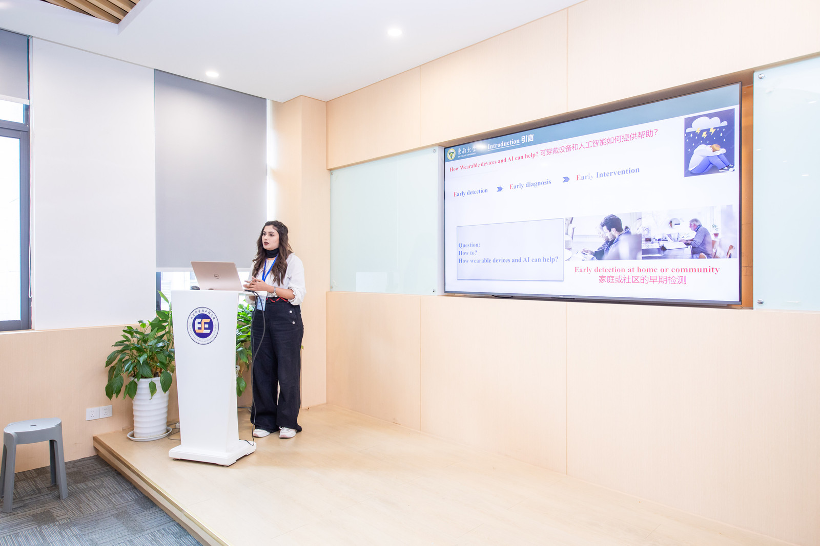 Maryam介绍了她关于“智能可穿戴设备在心理健康中的应用及数据驱动抑郁症检测”的研究,探讨了可穿戴电子设备和人工智能如何有助于重度抑郁障碍(MDD)的早期检测、诊断和干预。她的研究突出了主观诊断实践与客观生理监测之间的差距,为利用可穿戴技术构建可扩展、非侵入性且客观的心理健康监测解决方案提供了思路。她的演讲引发了宝贵的讨论,全国各地的参与者对使用可穿戴技术的医疗人工智能领域表现出浓厚兴趣,其中一些人计划未来进行合作。